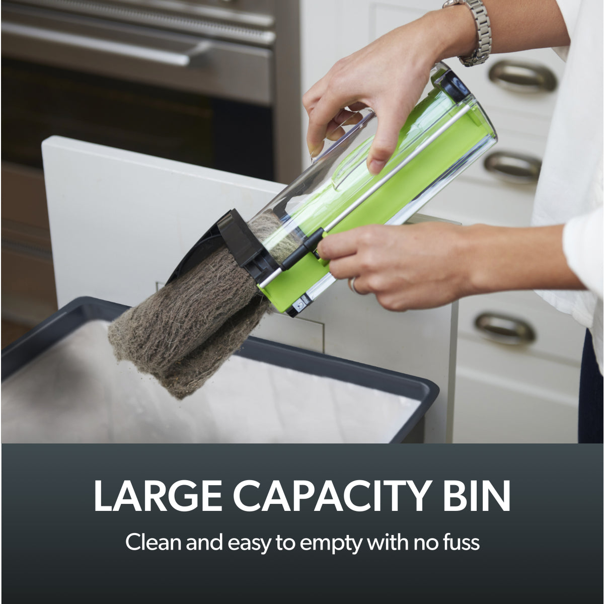 - Detachable bin for fast, hygienic emptying