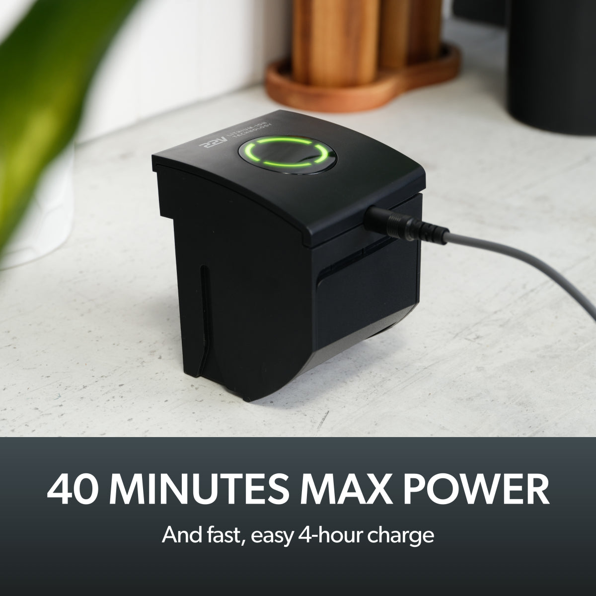 - Up to 40 minutes runtime per charge